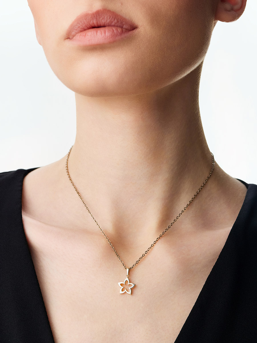 Elegant silver flower pendant with an airy design. Cute basic pendant with a playful mood.
